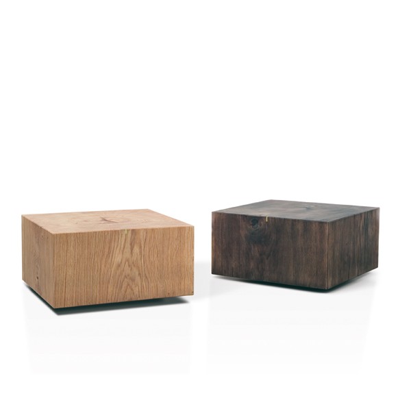 The coffee table CT E is sawn from a log which is at least 180 years old, it is then planed and sanded in the OC workshop. CT E has a rectangular shape and can be used as a side table, stool and object all in one. Quietly gliding soft rubber castors that rotate 360° are worked into the trunk by hand. Each CT E is made from one piece of wood. The core, the heart of the tree, remains in the center of every table. Location and room temperature will affect the piece and cause cracks which is a natural and delightful contrast to the perfectly crafted surface. CT E can be purchased in natural light oak or dark smoked oak with an oiled surface.
