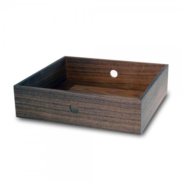 The QR drawer looks great and elegantly hides beloved, useless, secret, valuable and every-day-necessary bits and pieces. Designed matching the dimensions of the shelving system, each square compartment with shelving insert can be used as your favourite hideout.