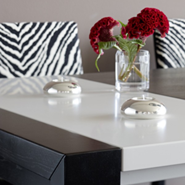 TIRARE ist ein Esstisch der besonderen Art. Der ausziehbare Tisch besticht durch kontrastierende Details in zeitlosem Design und durchdachter Funktion. Das Gestell aus schwarzbraun gebeizter Esche unterstreicht auf raffinierte Weise die farbigen Lackflächen der Tischplatte.